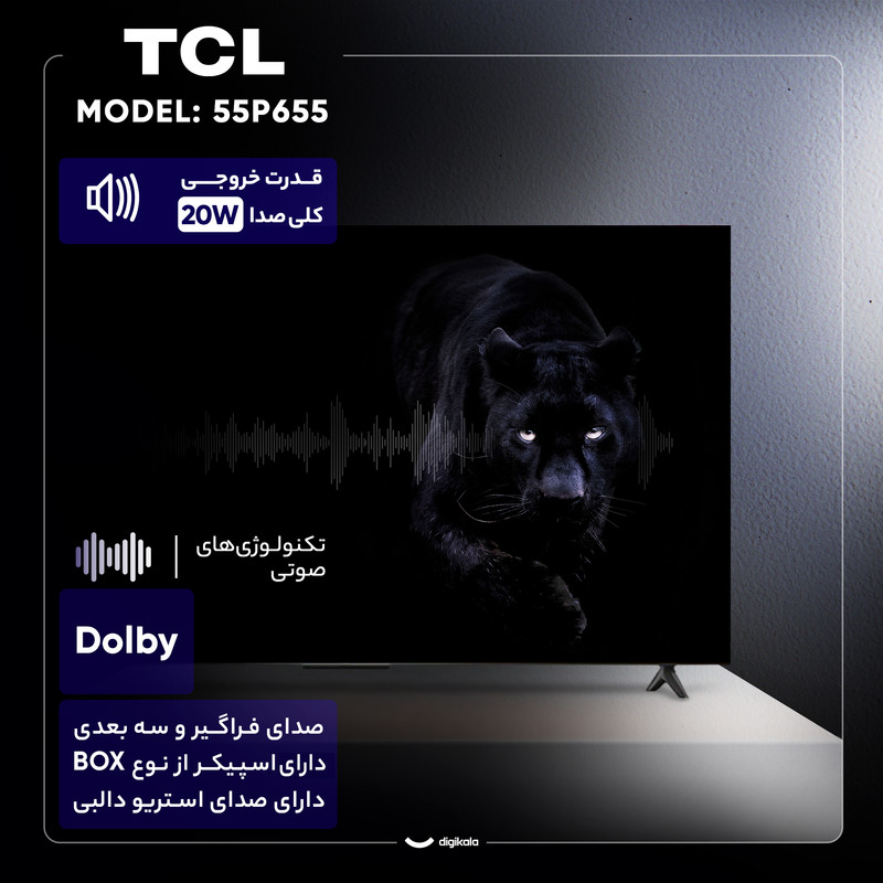 تلویزیون ال ای دی هوشمند تی سی ال مدل 55P655 یکی از مدلهای پیشرفته و کارآمد این برند است که با صفحه نمایش ۵۵ اینچی و وضوح تصویر Ultra HD – 4K، تجربهای بینظیر از تماشای فیلم و برنامههای تلویزیونی را ارائه میدهد. این تلویزیون با استفاده از پنل VA و پشتیبانی از فناوری HDR10، رنگها را با دقت بالا نمایش داده و تصاویر را با کنتراست بهینه و جزئیات دقیق ارائه میکند. سیستمعامل اندروید ۱۱ این تلویزیون امکانات متعددی از جمله دسترسی به اپلیکیشنهای اندرویدی، مرور وب و قابلیت نصب بازی را در اختیار کاربران قرار میدهد. علاوه بر این، فناوری Screen Mirroring امکان اشتراکگذاری محتوای گوشی یا تبلت را روی صفحه نمایش فراهم ساخته است و کار با این دستگاه را لذتبخشتر میکند. از نظر کیفیت صدا، این مدل دارای دو بلندگوی ۱۰ واتی با مجموع توان خروجی ۲۰ وات است که به همراه فناوری Dolby Stereo و صدای سهبعدی فراگیر، تجربه صوتی جذاب و واضحی را ارائه میدهد. در بخش اتصالات، تلویزیون تی سی ال 55P655 دارای سه درگاه HDMI، یک درگاه USB 2.0، ورودی کامپوزیت، خروجی صدای دیجیتال، پورت LAN، بلوتوث نسخه ۵.۰ و Wi-Fi است که امکان اتصال به انواع دستگاههای جانبی را به راحتی فراهم میکند. همچنین، قابلیتهای Time Shift، ضبط برنامه و پشتیبانی از زیرنویس، از دیگر امکانات کاربردی این تلویزیون محسوب میشوند. این تلویزیون با گرید انرژی A+، مصرف برق بهینهای دارد و طراحی باریک و مدرن آن، جلوهای زیبا به محیط میبخشد. با توجه به کیفیت تصویر بالا، سیستم صوتی پیشرفته و امکانات هوشمند متنوع، مدل55P655 یک انتخاب عالی برای کسانی است که به دنبال تلویزیونی پیشرفته، مقرون به صرفه و پرامکانات هستند.