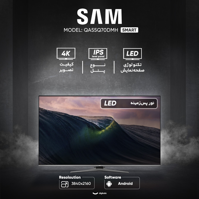 تلویزیون ۵۵ اینچ ال ای دی هوشمند سام مدل QA55Q70DMH با طراحی صفحه تخت و گرید انرژی A، ترکیبی کامل از کیفیت تصویر، امکانات هوشمند و طراحی مدرن را ارائه میدهد. این مدل به تکنولوژی صفحه نمایش QLED مجهز شده و از پنل پیشرفته IPS Level Panel بهره میبرد که زاویه دید گسترده ۱۷۸ درجه و دقت رنگ بالایی را در تمامی شرایط نوری فراهم میکند. رزولوشن ۳۸۴۰×۲۱۶۰ پیکسل با نسبت تصویر ۱۶:۹ و کیفیت ۴K باعث نمایش جزئیات دقیق و رنگهای واقعی میشود. نرخ بهروزرسانی ۶۰ هرتز و زمان پاسخدهی سریع ۸ میلیثانیه، حرکتها را روان و بدون تاری نمایش میدهد. روشنایی ۳۰۰ نیت و نسبت درخشندگی ۱۲۰۰ به همراه پشتیبانی کامل از کیفیت بالای رنگها، تجربه تماشای شفاف و زندهای را ایجاد میکند.