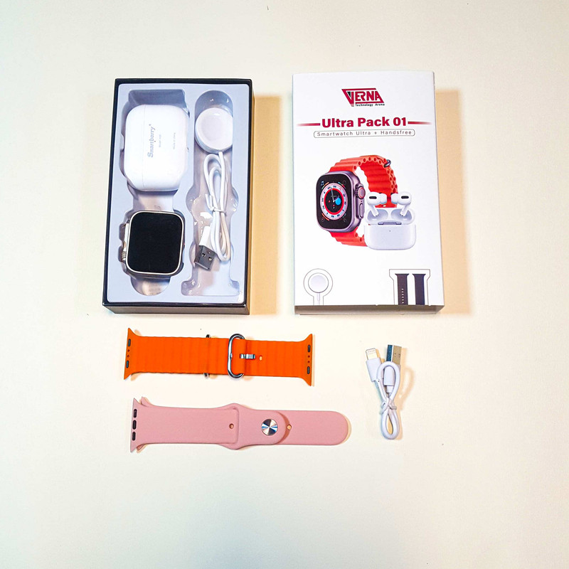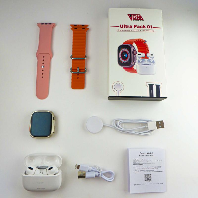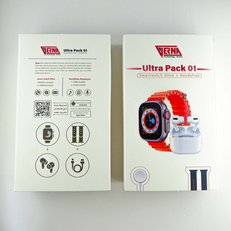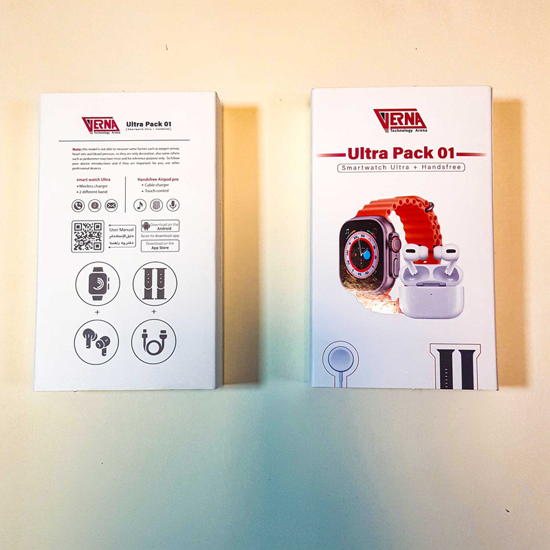 ساعت هوشمند و هندزفری بیسیم از پرطرفدارترین گزینهها برای خرید هدیه به شمار میروند. شرکت «ورنا» با ترکیب این دو محصول پرکاربرد، بستهای ویژه و اقتصادی با عنوان Ultra Pack 01 را عرضه کرده است که انتخاب هدیه را بسیار سادهتر میکند. این پک شامل یک ساعت هوشمند و یک هندزفری بیسیم است. همچنین دو بند متنوع در بساه بندی قرار داده شده است، یک بند اصلی اوشن و یک بند ساده سیلیکونی. ساعت هوشمند موجود در این مجموعه، علاوه بر طراحی زیبا و شباهت چشمگیر به آخرین نسخه اپل واچ سری اولترا، دارای سه دکمه فعال (دکمه اصلی، اسپرت و مجیک باتن) است که کارکردهای مختلفی دارند. یک راهنمایی صادقانه اینکه، همانند سایر نمونههای طرح و کپی، در این مدل هم تقریبا تمام سنسورهای سلامتی مثل اکسیژن، فشار خون و … جنبه تزئینی داشته و کار نمیکند، برخی هم که کار میکند مثل قدم شمار، ممکن است خطا داشته باشد.اما درعوض این مدل از فارسی پشتیبانی کرده و امکانات متنوعی همچون میکرفن و اسپیکر با امکان مکالمه بلوتوثی، ماشین حساب، کرنومتر و نمایش اعلان پیامک را در اختیار کاربر قرار میدهد و نیز یک اپلیکیشن اختصاصی که از طریق آن به صورت کاملا رایگان میتوانید طبق سلیقه خودتان پس زمینههای مختلف را برای ساعت تنظیم کنید یا حتی عکس دلخواهتون (مثلا عکس فرزندتان) را به عنوان تصویر زمینه ساعت انتخاب کنید در کنار ساعت، یک هندزفری بیسیم نیز در این پک قرار دارد که طراحی آن شباهت زیادی به ایرپاد پرو اپل دارد. کیفیت این هندزفری متناسب با قیمت آن میباشد و نیازهای روزمره کاربر را برطرف میکند. پس باید درنظر داشته باشید که توقع شما نیز باید متناسب با قیمت پکیج باشد و بدیهیست که این هندزفری، نباید با مدلهای برندهای اصلی مقایسه شود. مخصوصا در زمینه میکرفن و مکالمه این مدل بیشتر برای مخیطهای داخلی و غیر شلوغ مناسب است. با یک بار شارژ، امکان ۱ تا ۲ ساعت پخش مداوم موسیقی وجود دارد و کیس شارژ نیز میتواند هندزفری را حدود ۲ تا ۳ بار شارژ کند. برای شارژ کیس، یک کابل لایتنینگ در جعبه ارائه شده است. نکته آخر اینکه تصاویر ارائه شده برای این محصول واقعی بوده و طراحی تبلیغاتی نیستند. به طور خلاصه، اگر قصد دارید با صرف هزینهای مناسب، هم یک ساعت هوشمند و هم یک هندزفری با کیفیت قابل قبول تهیه کنید، Ultra Pack 01 انتخابی مطمئن خواهد بود.