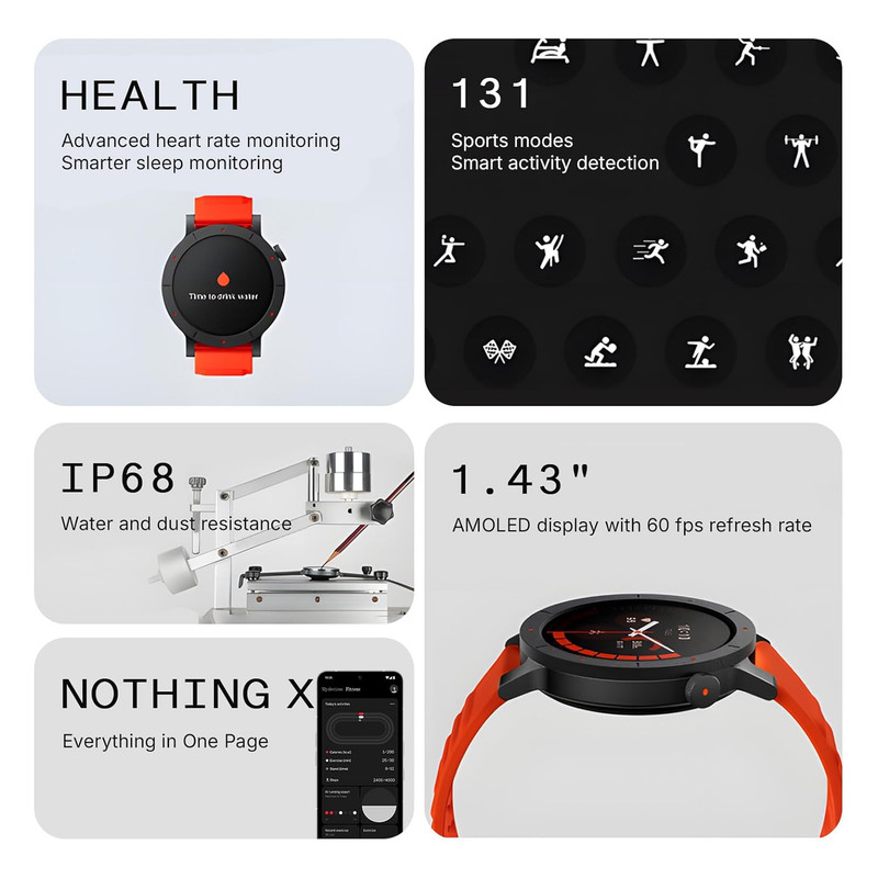 ورزشی : الگوریتم حرکتی هوشمند (Smart Movement Algorithm) / اندازهگیری ضربان قلب / ۱۳۱ حالت ورزشی با ۷ فعالیت شناسایی هوشمند / سلامتی: اندازهگیری خودکار ضربان قلب / پایش ۲۴ ساعته ضربان قلب / ثبت ضربان قلب در حالت استراحت / ثبت ضربان قلب هنگام ورزش / هشدار ضربان قلب / میانگین ضربان قلب / امتیاز فعالیت / تشخیص خواب (پشتیبانی از پایش پیشرفته خواب) / اندازهگیری سطح اکسیژن خون (SpO₂) / ثبت وضعیت فیزیولوژیکی بانوان / یادآور اندازهگیری اکسیژن خون / پایش استرس / شمارش گامهای روزانه / محاسبه کالری مصرفی / اندازهگیری مسافت پیموده شده / ثبت مدت زمان فعالیت / یادآور نوشیدن آب / یادآور تحرک (Stand Up Reminder) / سایر قابلیتها: تبدیل گفتار به متن (Recording Transcription) / نمایش اخبار مهم / مکالمه بلوتوثی / واچفیسهای متنوع / واچفیس با تصویر آلبوم شخصی / واچفیس ویدیویی / استودیوی طراحی واچفیس / قابلیت تعویض واچفیس / تمرین تنفس / اعلان پیامها / کنترل موسیقی / تایمر / کرنومتر / زنگ هشدار / هشدار پیام با ایموجی / نمایش وضعیت آبوهوا / پیدا کردن گوشی / چراغقوه / کنترل از راه دور دوربین / یادآور / دستیار صوتی / تقویم / ماشینحساب / ساعت جهانی |