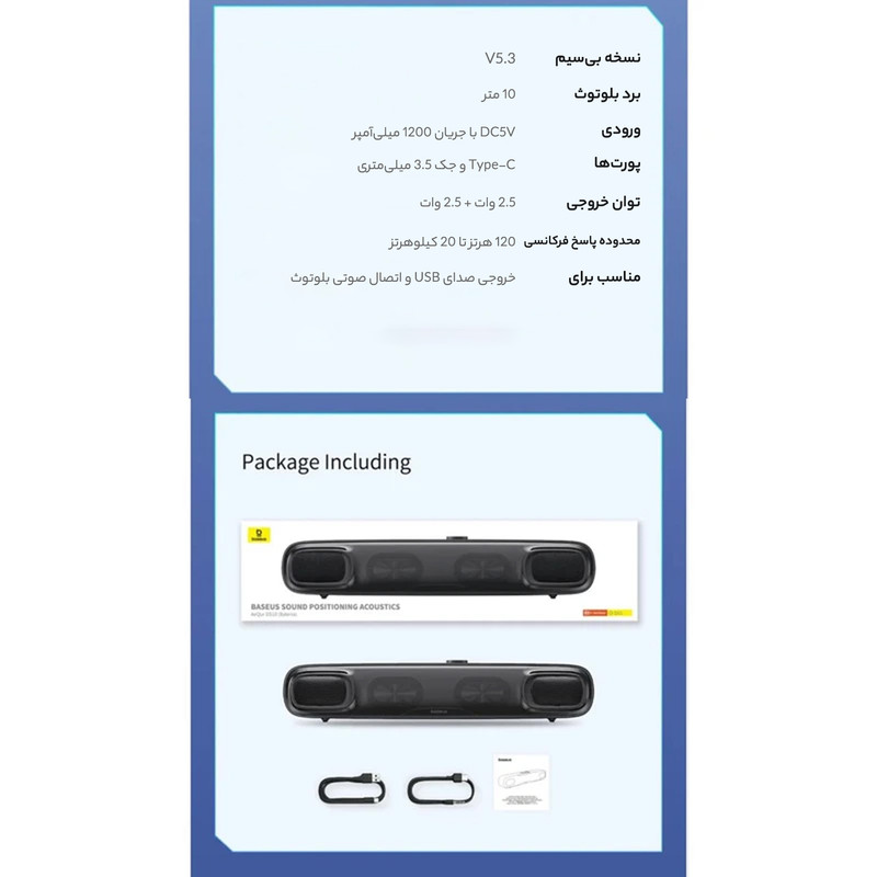 لحظات فراموش نشدنی را هنگام تماشای فیلم، گوش دادن به موسیقی یا بازی تجربه کنید. مینی ساندبار Baseus AeQur کیفیت صدای فوقالعادهای را ارائه میدهد. از چندین روش اتصال از جمله بلوتوث 5.3 پشتیبانی می کند. همچنین دارای یک میکروفون داخلی میباشد.