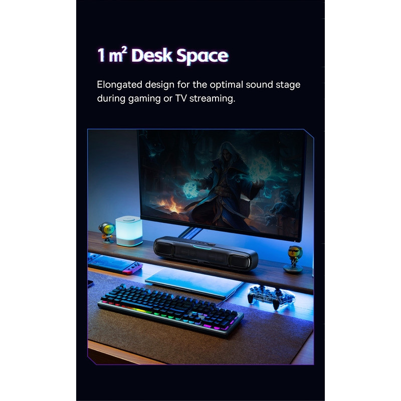 جنس:ABS + PC + فلز / محدوده فرکانس:80 هرتز – 20 کیلوهرتز / برد: حدود 10 متر / دارای جلوه های صوتی و نورپردازی RGB / مجهز به میکروفون داخلی / تجربه صوتی سه‌بعدی (Soundscape) / Sound Positioning Acoustics