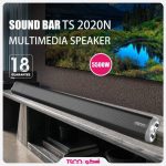 ظاهر بروز و جمع و جور ساندبار و ساب ووفر TS 2020N برای کسانی که میخواهند در محیط خانه خود فضای زیادی برای سیستم صوتی اشغال نشود بسیار کاربردیست. کیفیت بدنه این محصول بالا بوده و در بخش جلویی دارای ال ای دی قرمز است که ورودی و تنظیماتی مثل عدد حجم صدا را نمایش میدهد. در کنار ساندبار و ساب ووفر در جعبه یک کابل AUX، یک کابل اپتیکال، دفترچه راهنما، کارت گارانتی و ریموت کنترل موجود است.