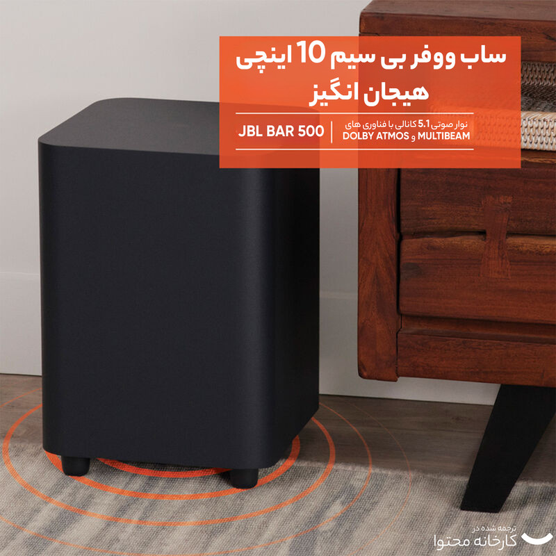 JBL Bar 500 با 590 وات توان خروجی فیلمها، موسیقی و بازیهای شما را به تجربههای صوتی فراگیر تبدیل میکند. در صدای فراگیر سه بعدی با کیفیت در صحنههای سینما غوطهور شوید. بدون نیاز به اسپیکرهای فراگیر اضافی، جلوههای صوتی فوقالعادهای را از همه جای اتاق بشنوید. بیس مهیج و دقیق از یک ساب ووفر بیسیم قدرتمند 10 اینچی، اکشن را JBL Bar 500 به فیلمهای شما و احساسات را به موسیقی شما میآورد. فناوری PureVoice از الگوریتم منحصربهفرد برای بهینهسازی وضوح صدا استفاده میکند تا اطمینان حاصل کند که هرگز یک کلمه گفتگو را از دست ندهید، حتی زمانی که جلوههای فراگیر در اوج هستند.